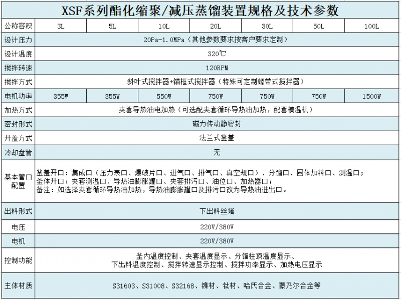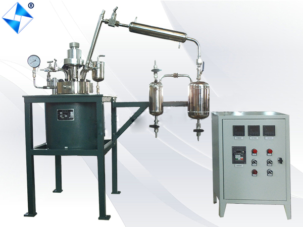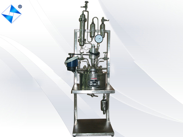 實驗室聚合釜由反應容器、攪拌器及傳動系統、降溫裝置、防爆裝置、加熱爐等組成.酯化縮聚反應釜是一種將酯化與縮聚同時完成的反應裝置,在酯化縮聚反應釜做酯化反應時通過精餾柱、填料塔、冷凝器將酯化反應生產的水分及低分子物分離出去;在酯化縮聚反應釜做縮聚反應時將酯化反應閥門關閉將縮聚閥門打開,將溫度調到較高溫度條件下通過攪拌系統將許多相同或不相同低分子物質相互作用,生成高分子物質,同時將析出小分子通過冷凝器接收罐將其分離收集起來。酯化縮聚反應釜廣泛應用在有機合成、化工化纖等領域。